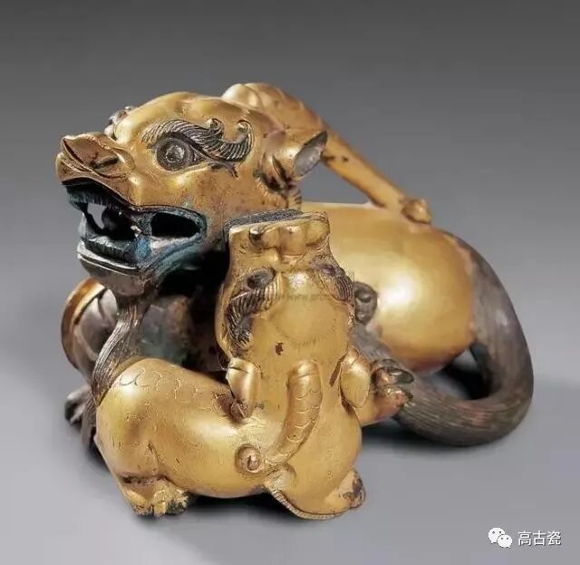 唐 鎏金铜狮形镇纸 美国弗利尔美术馆藏