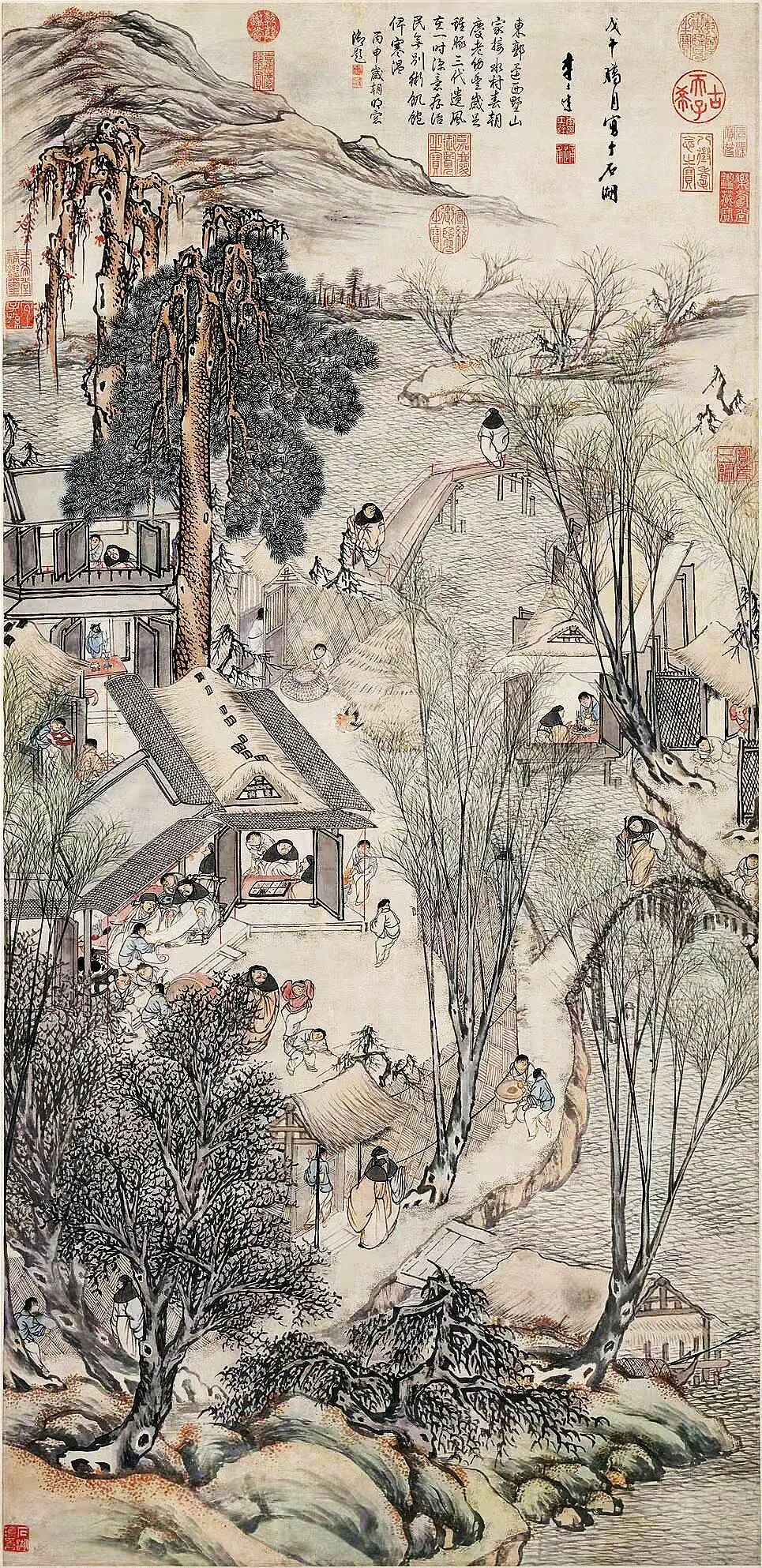 李士达 岁朝村庆图 132.9x64cm 纸本设色 故宫博物院藏