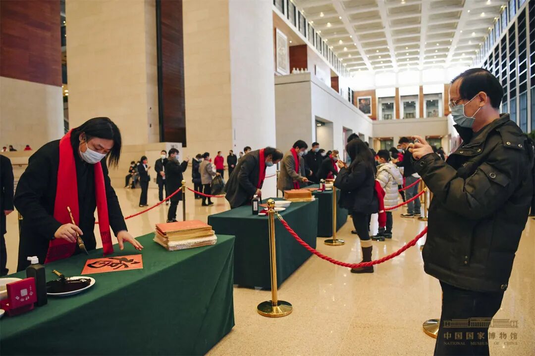 2月1日,来自中国国家博物馆的书画家们现身西大厅,在壬寅虎年大年初一为观众送上饱含墨香的新年祝福。国家博物馆馆长王春法,党委书记、副馆长单威,党委副书记古建东在活动期间也来到现场与书画家们一道为观众送上新春祝福。杨军、崔东湑、马硕山、赵建军、石峰、晁岱双、高秀清、晏小飞、谭斐、康梦洁等参与了本次活动。