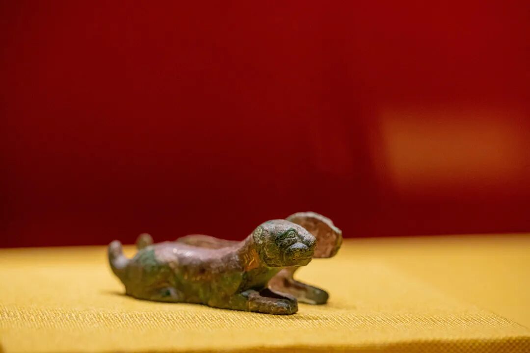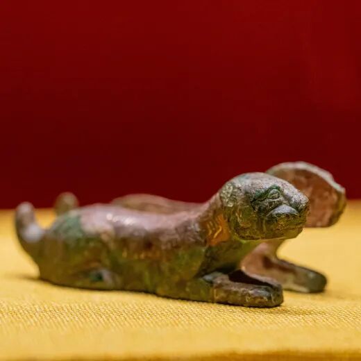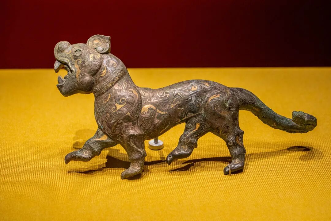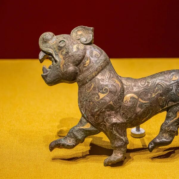 此件带钩虎尾被巧妙地设计为钩首,钩系束腰带。不规则形状的金银片被嵌在虎身上,彰显虎的斑斓毛色,充满明快流畅的观感。