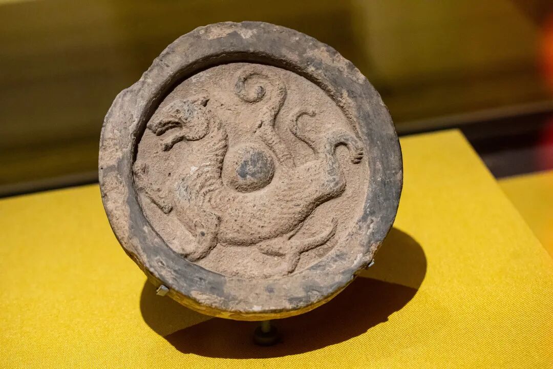白虎昂首竖耳,作奋力奔驰状。虎身体的动态与瓦当的圆形轮廓相契合,如满弓储蓄力量,气势雄浑,展现出汉代的精神面貌和艺术美感。