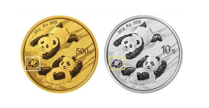 惊喜一,首次出现熊猫金币发行40周年标识。