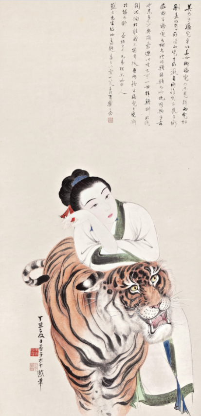 张善子;张大千 span style='color: rgb(136, 136, 136);font-family: -apple-system, "system-ui", "Helvetica Neue", "PingFang SC", "Hiragino Sans GB", "Microsoft YaHei UI", "Microsoft YaHei", Arial, sans-serif;font-size: 14px;letter-spacing: 0.544px;'>〈伏虎仕女〉