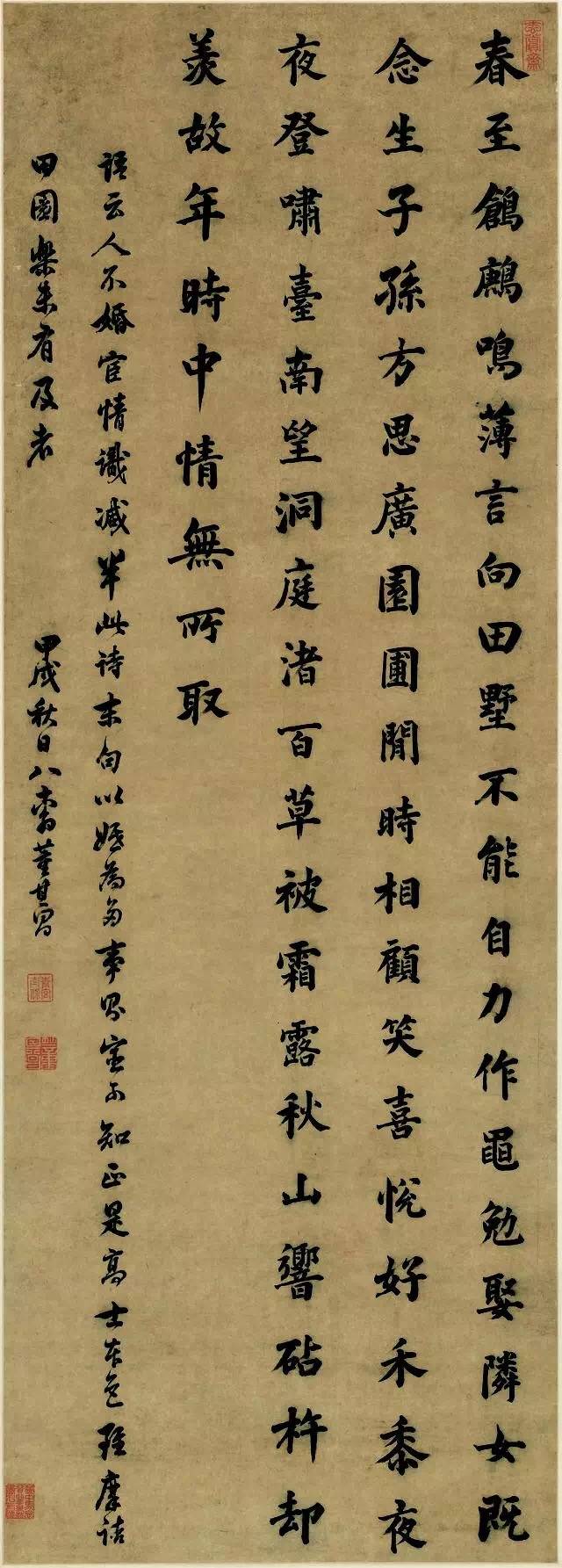 下面是董其昌在八十岁时书写的楷书《<田家杂兴八首>之一》(唐代储光羲作),董公虽已耄耋之年,但其书苍劲浑厚,笔笔入肉,划划见骨!