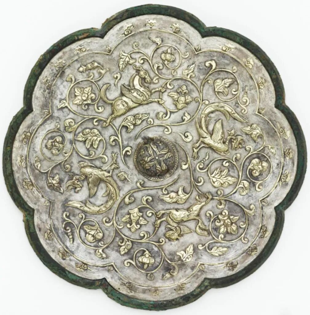 唐 银背鎏金飞禽走兽纹花口镜(整体) 美国弗利尔美术馆藏