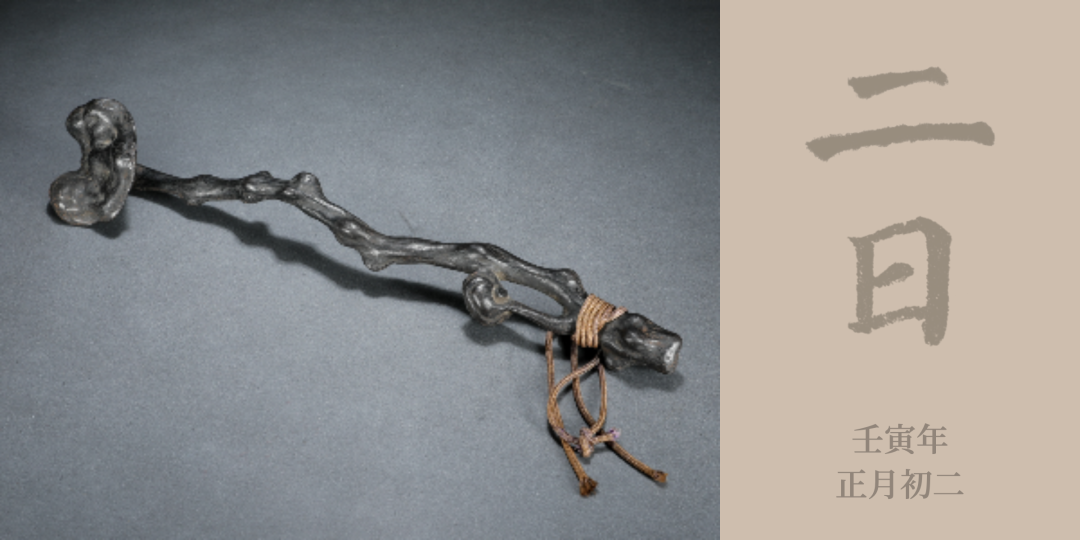 通体为铁制,造型奇特,整体为仿生灵芝造型。首部为灵芝头,惟妙惟肖。杆部为灵芝楞,蜿蜒曲折。尾端有一小灵芝,其头根与主体连为一体,形成柄部。