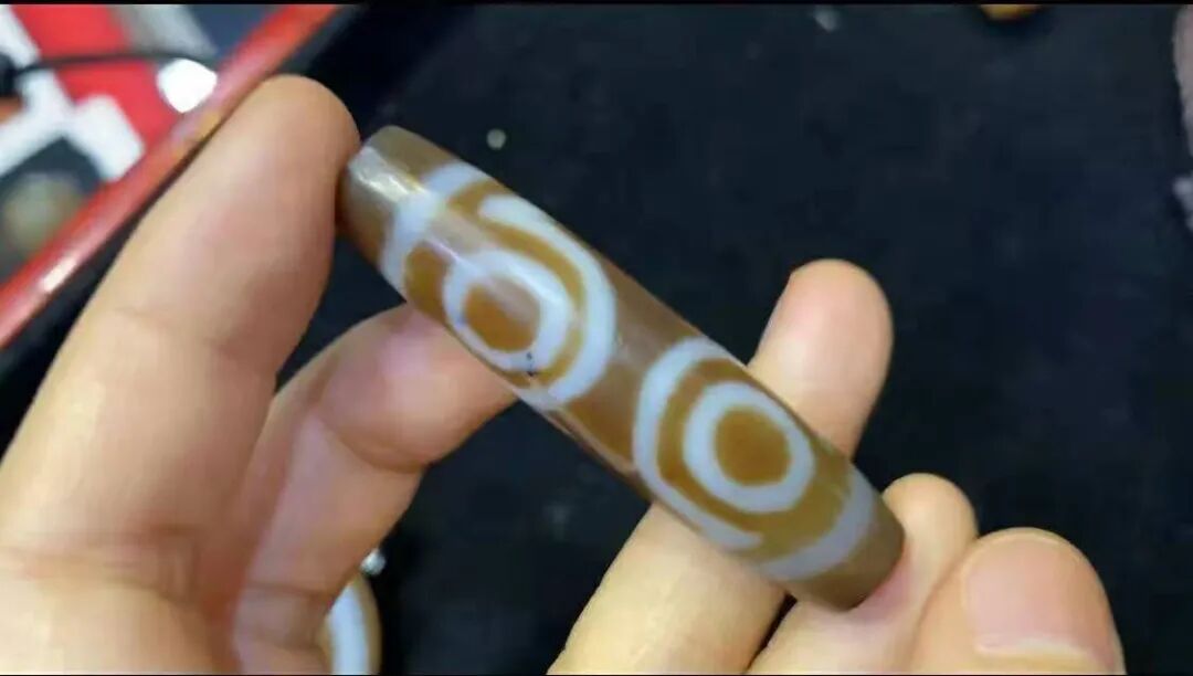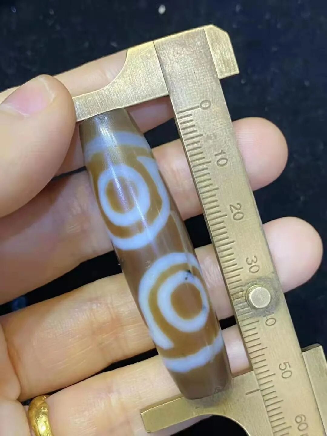 【古珠上新】千年老玛瑙古珠镶蚀玛瑙古珠特殊图腾三眼措思天珠(精品系列)北京现货合作出品-Y1: