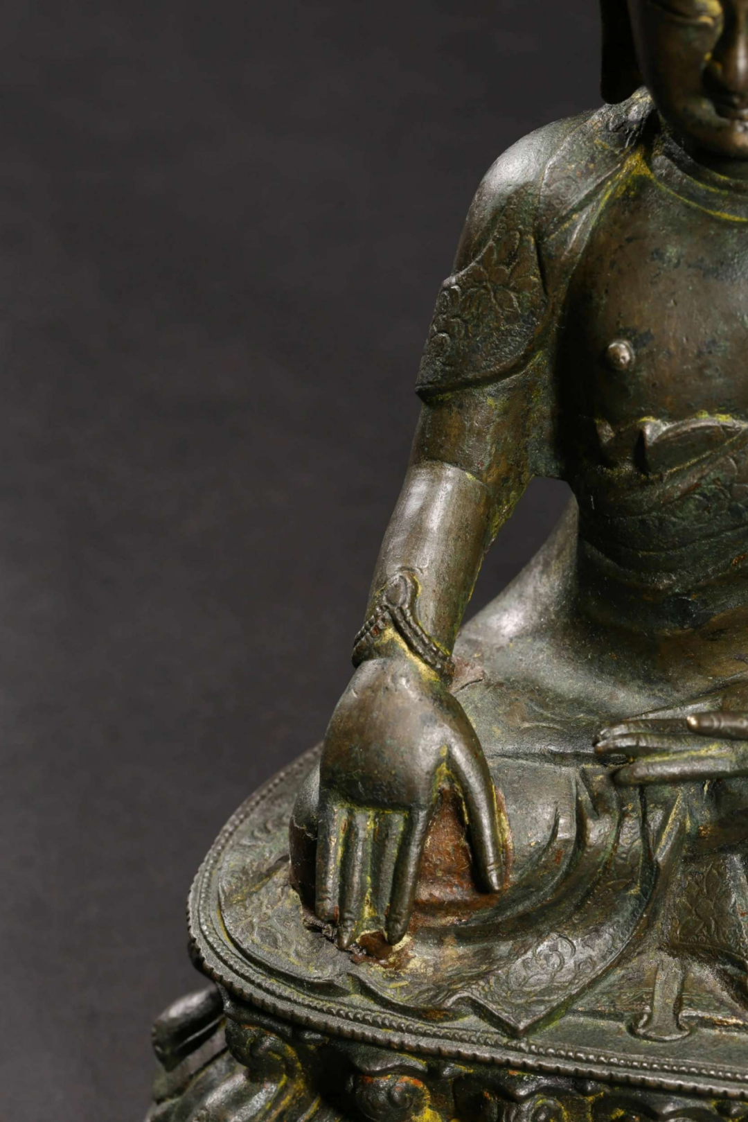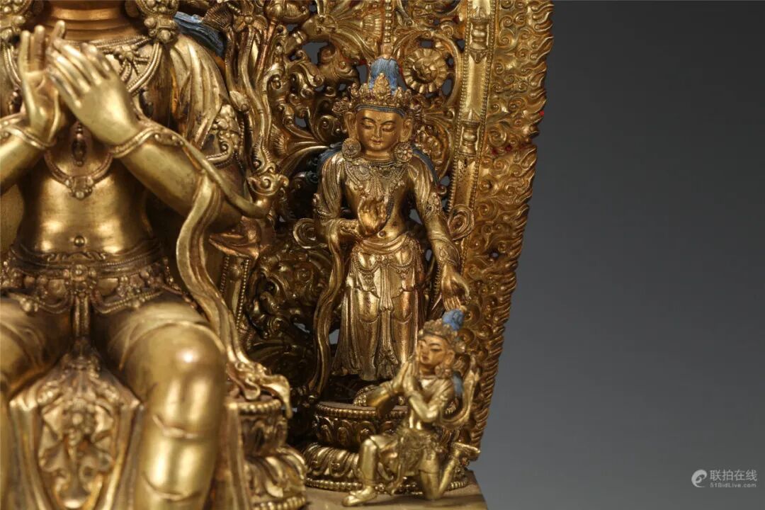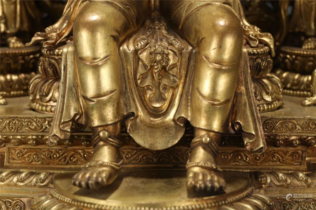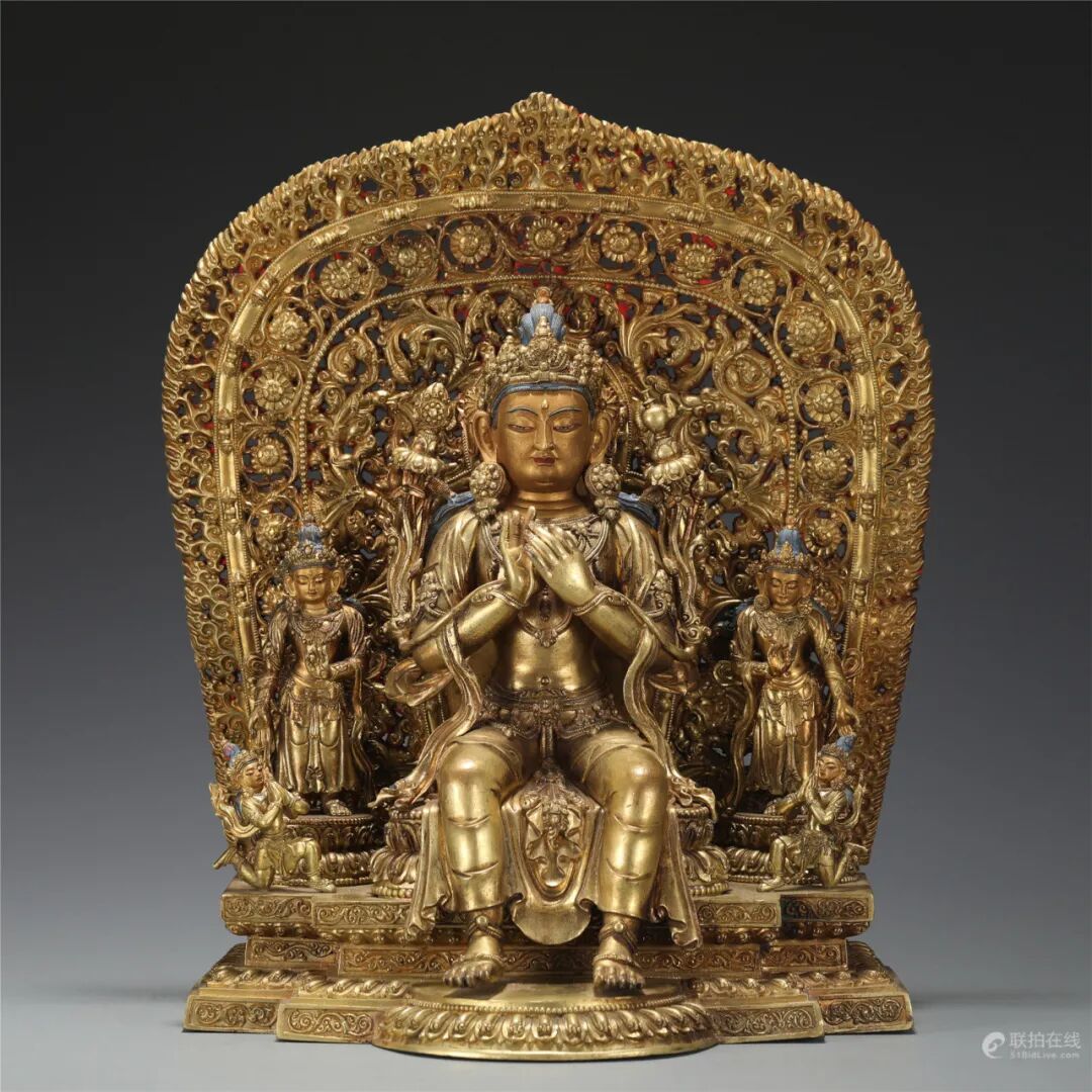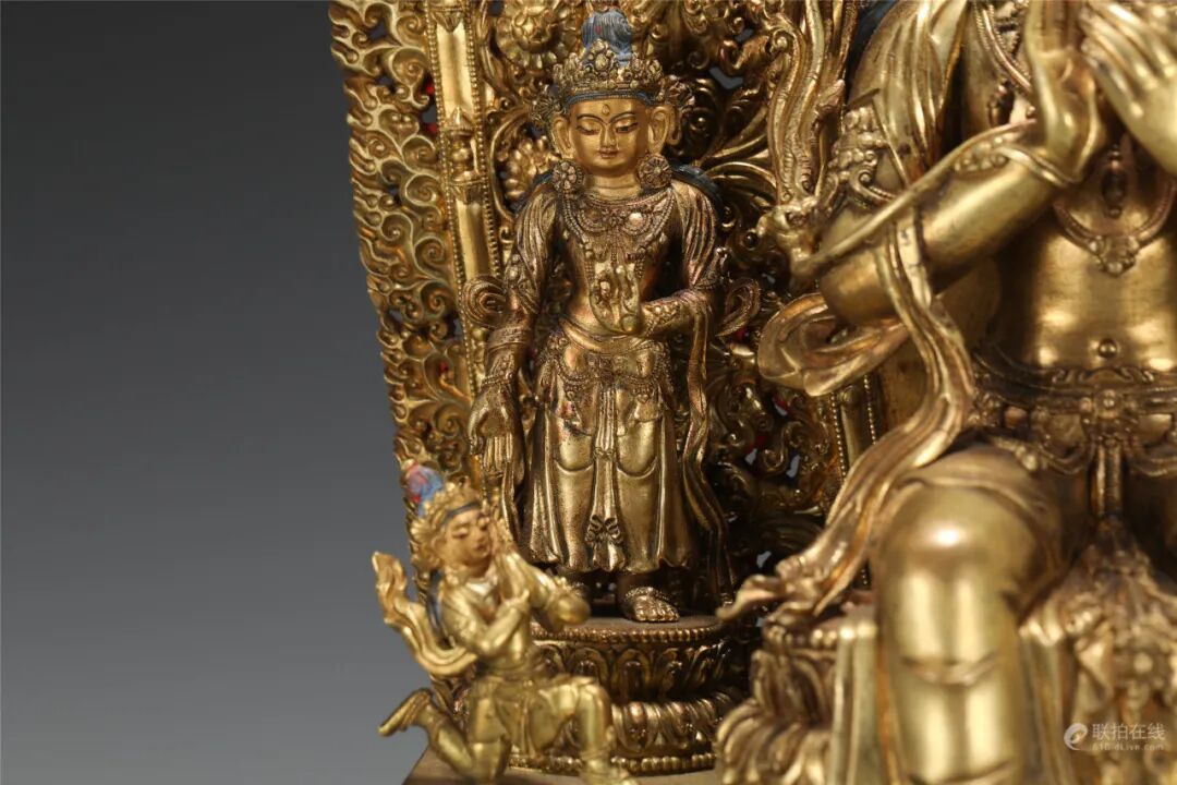 鉴定意见:释迦牟尼佛成道像。面相端庄,如法如仪。莲辨,衣纹等线条刚劲有力。局部残留着当年漆金的痕迹,属于冷金技法。从莲座的背后看,有一部分省略了,是明代中晚期莲瓣的普遍做法。整体造型端庄,比例匀称,刀工刚劲流暢。底胎铸造方法合理,是明代中期北方地区的作品。约相当于明代成化嘉靖时代所造。值得收藏。