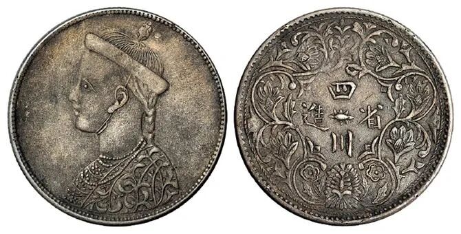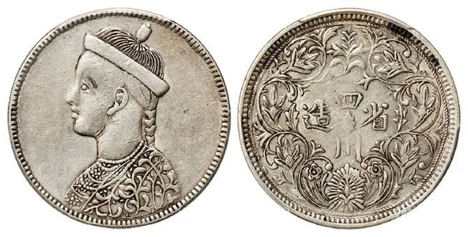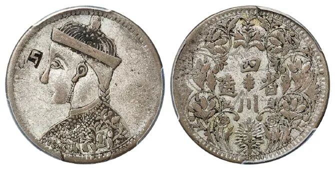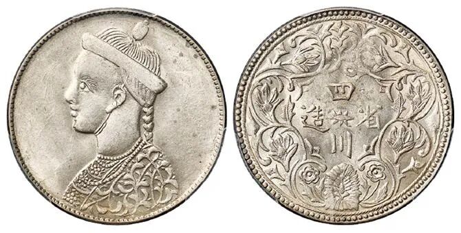简介:1902-1911年四川省造第一期光绪像一卢比银币一枚,Y-3/LM-360,无领直花版,少见版别,PCGS XF45。