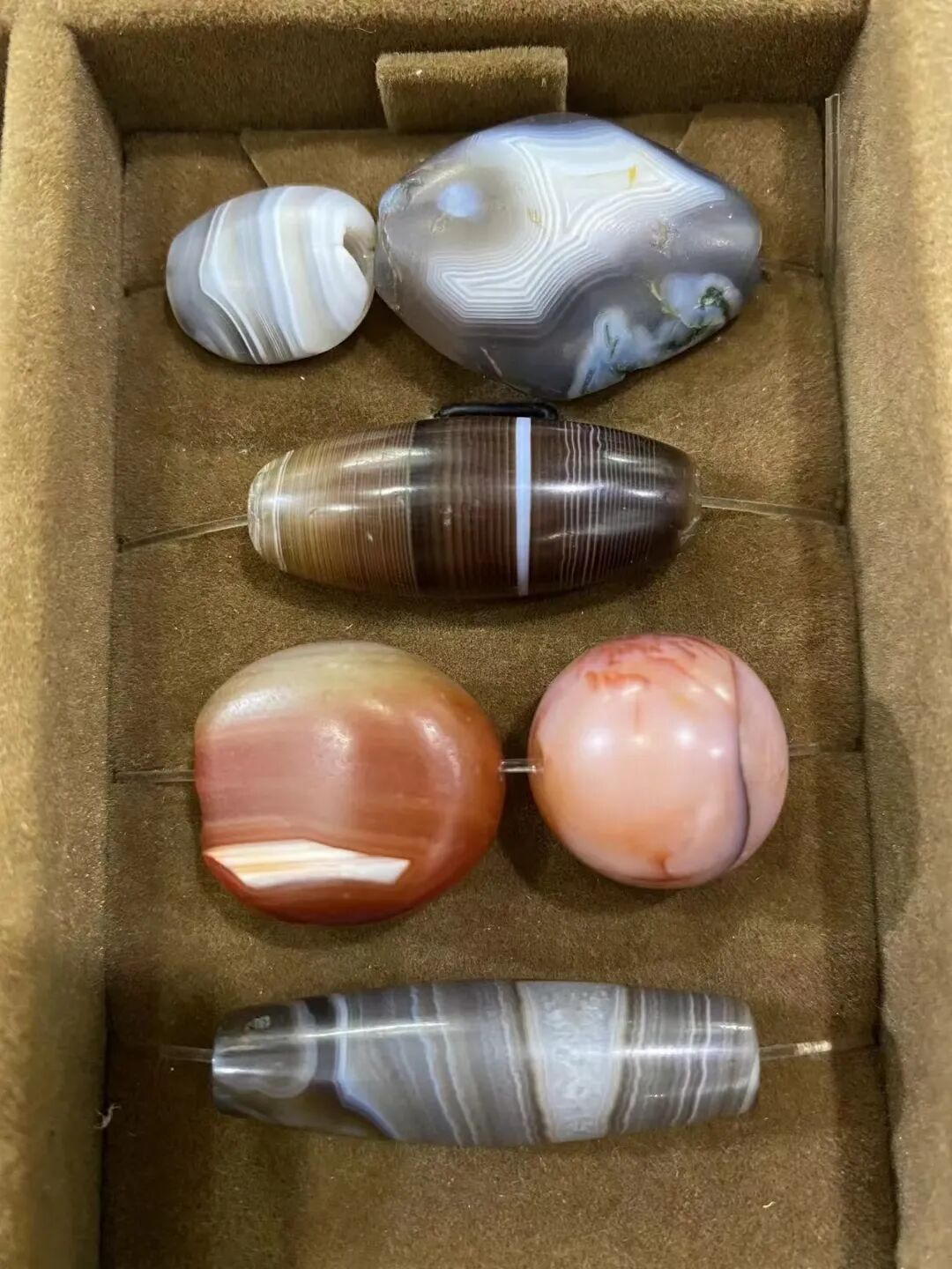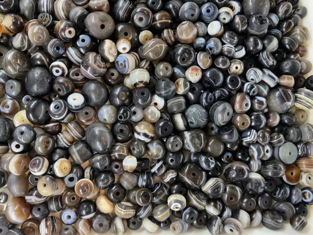 下面这几颗玛瑙羊眼珠珠是波斯帝国时期的珠珠。在伊朗境内波斯帝国时期的古都 波斯波利斯 (Persepolis) 临近的Parsa古城出土。