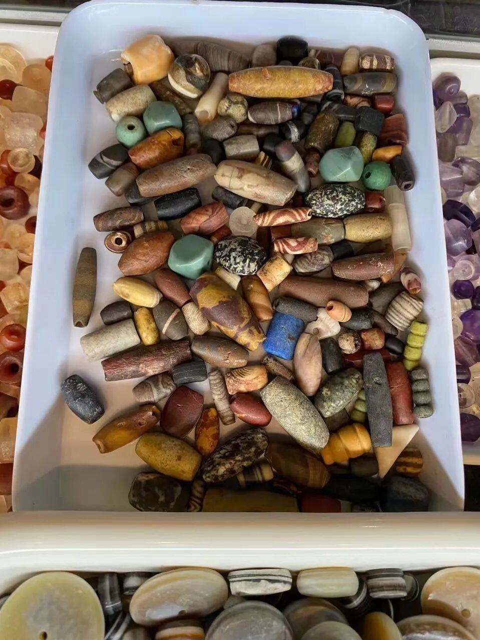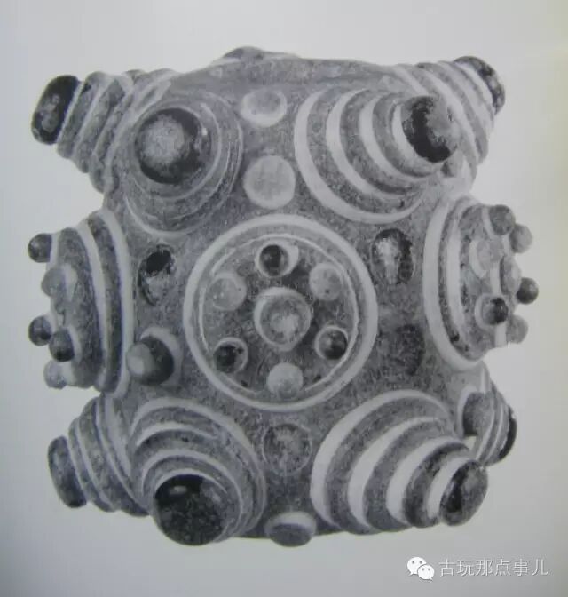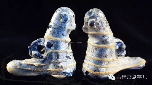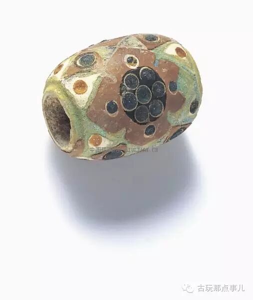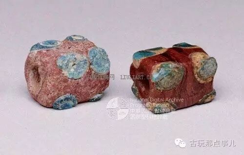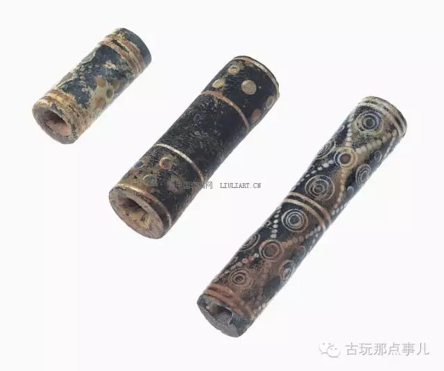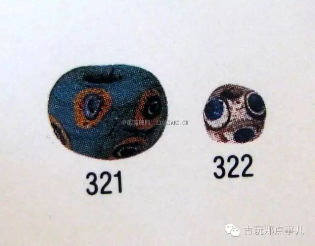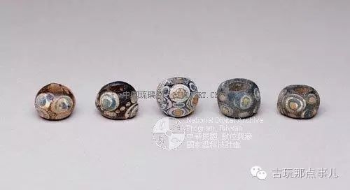 当时中西亚琉璃蜻蜓眼珠珠的形状除了以圆形,人头面或动物头为主外,其他形状很少见。不过咱战国时期的琉璃蜻蜓眼珠珠则沿着中国玉珠珠文化衍生,除了圆形珠珠外, 还有圆形管,方形管状,此乃沿袭中国古玉勒文化来也。