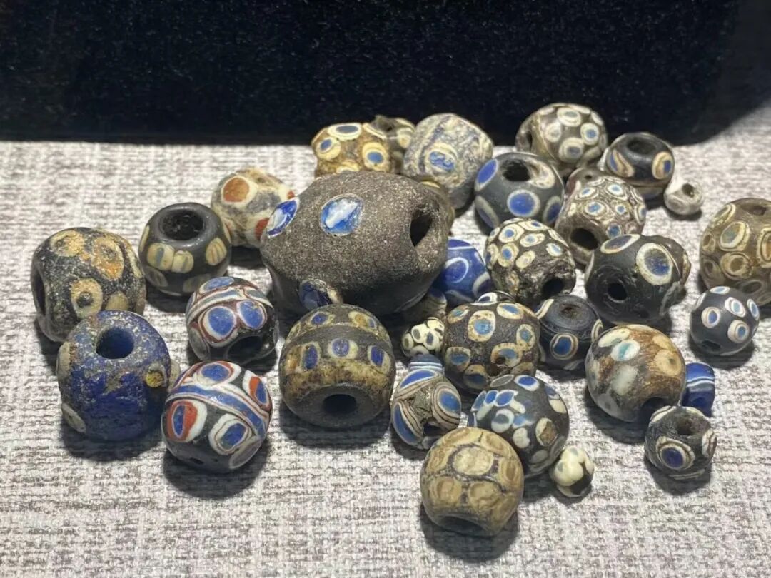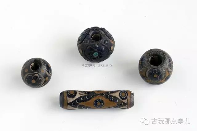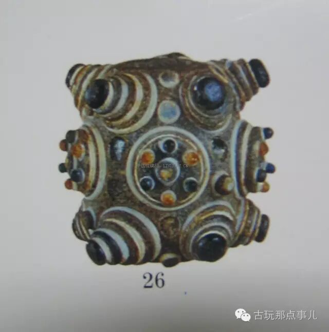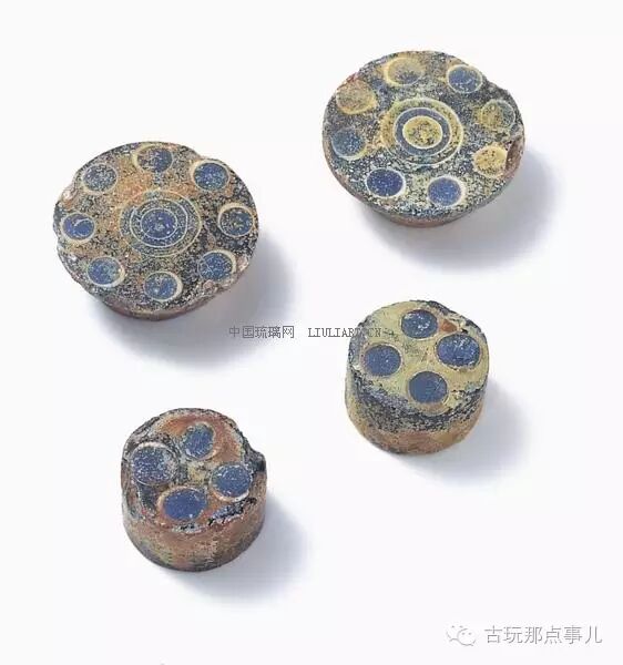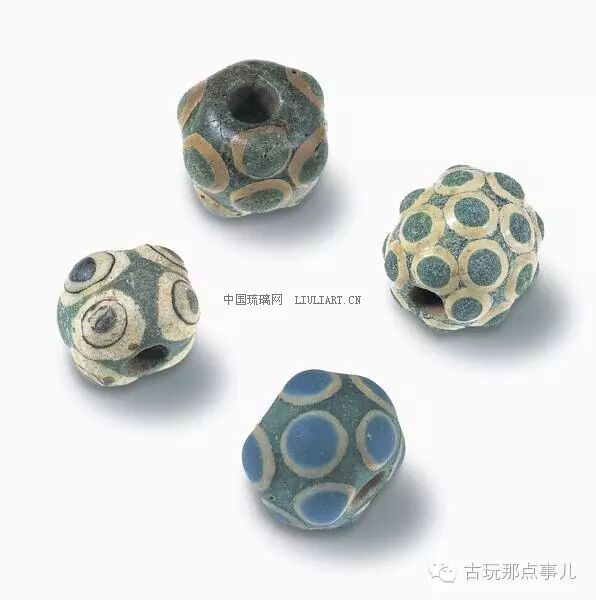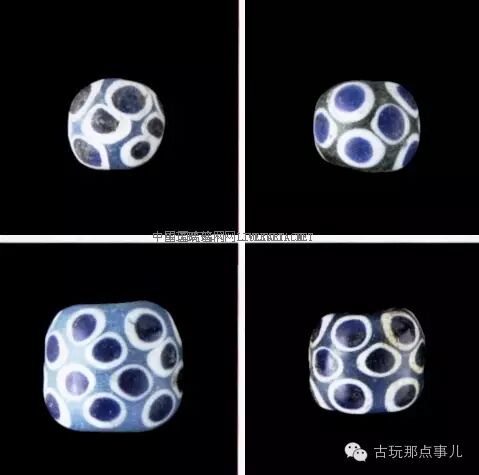 看看下面几个国内出土的琉璃蜻蜓眼珠珠,圆形,方形,管形,与 扁珠形。