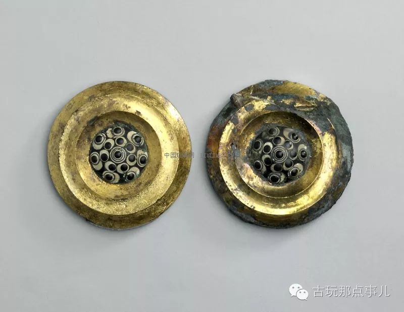 镶嵌琉璃蜻蜓眼铜鎏金饰物 战国时期(公元前475 -前 221)河南洛阳金村出土。战国时期 (公元前475-前221),美国哈佛艺术博物馆藏。