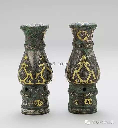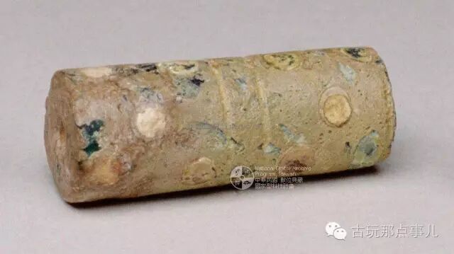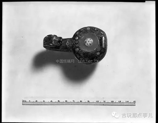 琉璃蜻蜓眼在战国时期倍受诸侯爷们喜爱,也被镶嵌在其他饰物上,除了辟邪外也增加美观。看看此见当时用于马车上的杆子尾端盖,镶嵌了蓝白色的琉璃蜻蜓眼。战国时期,美国哈佛大学艺术博物馆藏。