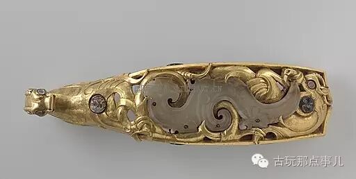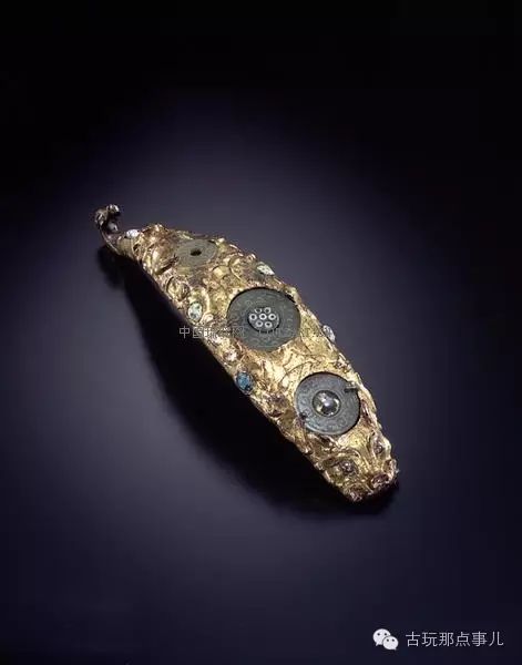 战国时期 镶嵌玉与琉璃蜻蜓眼的金带扣