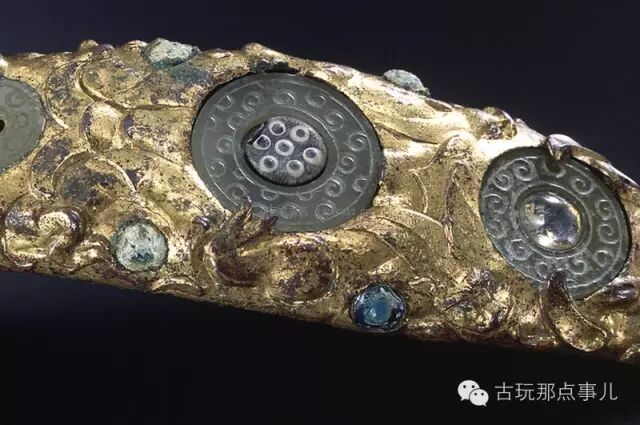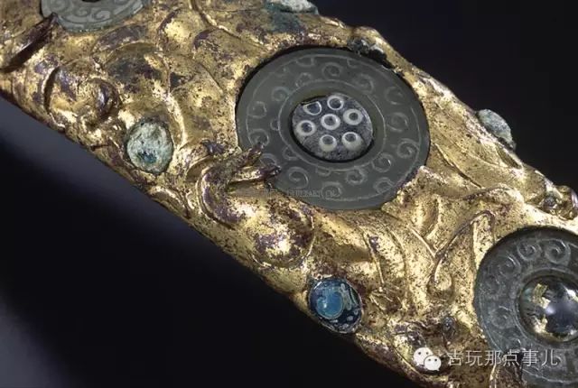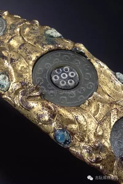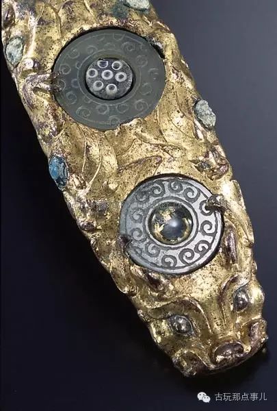 琉璃蜻蜓眼镶嵌在带勾上, 汉代也延续着。
