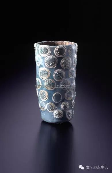 非常精致美丽的战国时期蜻蜓眼 角型眼具有蓝白色五层, 突出的七小眼坐落于鼓起的圆底座。美国康宁公司,康宁玻璃博物馆藏 (位于纽约州康宁城)