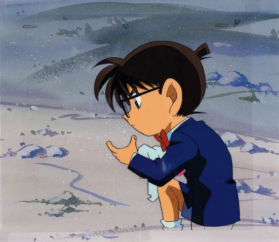 青山刚昌《在雪地里搜查的柯南,赛璐璐,附线稿》