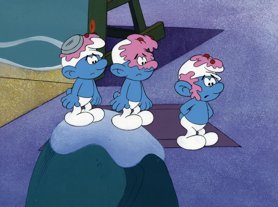 皮埃尔 库利福德《三只闯祸的蓝精灵,赛璐璐,附原稿+背景稿+线稿》