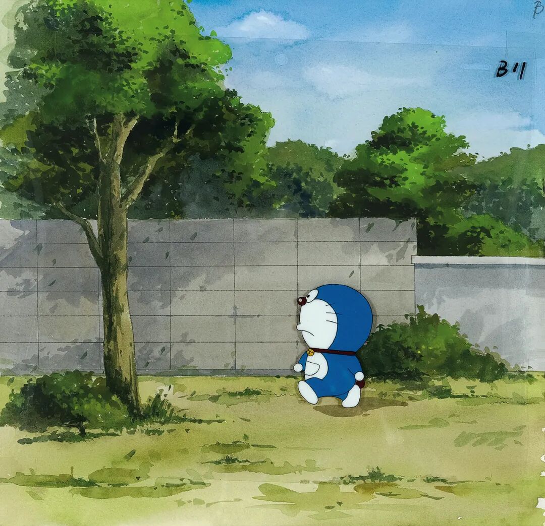 臼井仪人《落里发牢骚的小新,赛璐璐,附原稿+ 背景稿 + 线稿》