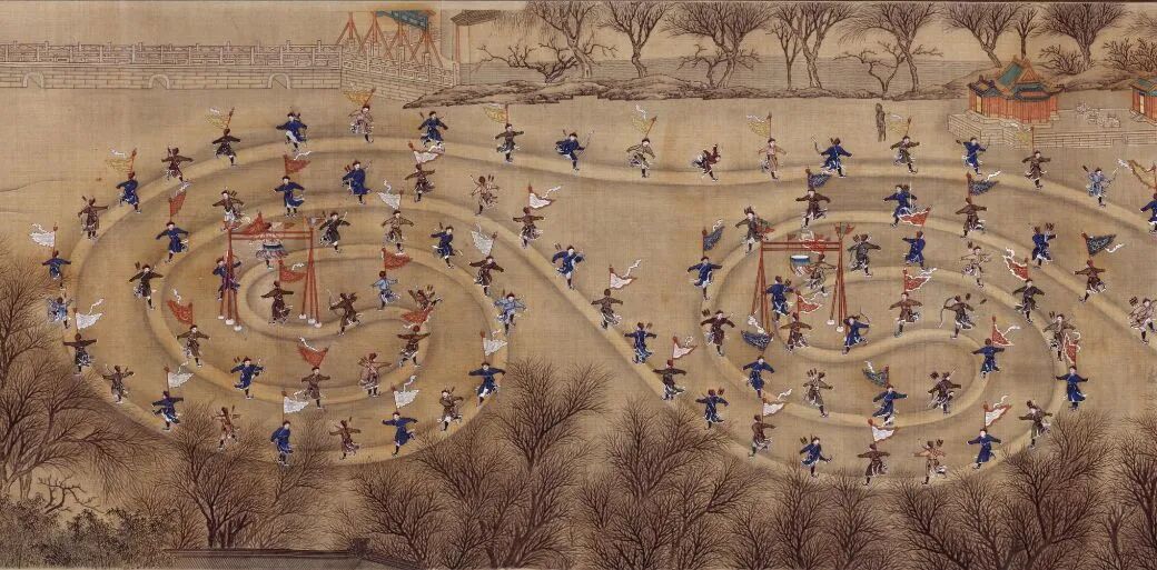 由乾隆皇帝主导创立的冰嬉盛典,在乾隆朝立刻迎来了巅峰,无论是庆典规模还是次数都远超后世。据《乾隆帝起居注》记载,乾隆十七年至乾隆六十年,乾隆皇帝阅视冰嬉的次数超过一百五十次。皇帝冬季阅视冰嬉的传统,在嘉庆朝得以延续。根据《清实录》的记载,嘉庆朝阅视冰嬉的次数也超过一百次,嘉庆朝阅视冰嬉的频率高于乾隆朝。综合《乾隆帝起居注》和《清实录》的记载,可以看出嘉庆朝基本继承了乾隆年间的冰嬉盛典,但在活动的具体细节方面有所区别。
