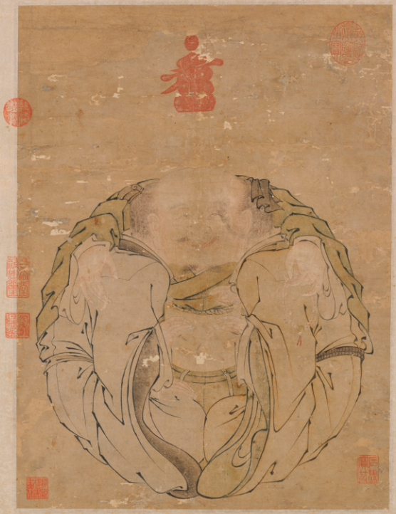 除了行踪不定,据说喜神也很少显现神形,不过这难不倒古人,民间仍能为喜神赋予一个非常可爱的形象,主要源自明宪宗朱见深所绘的《一团和气图》。
