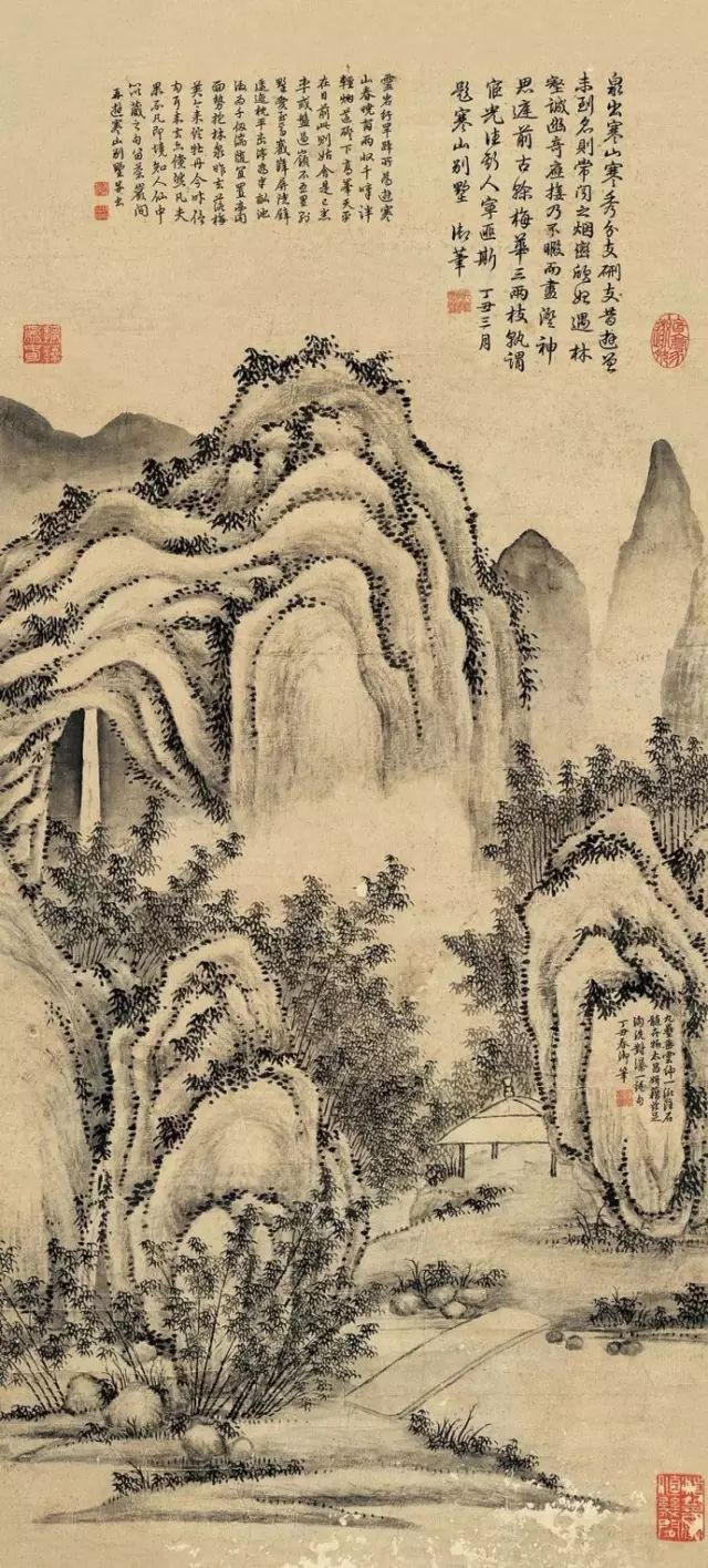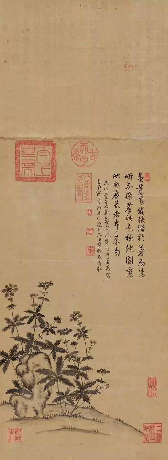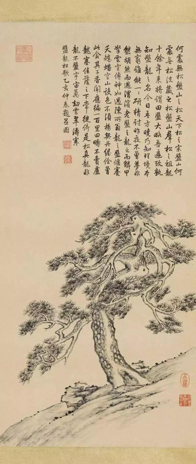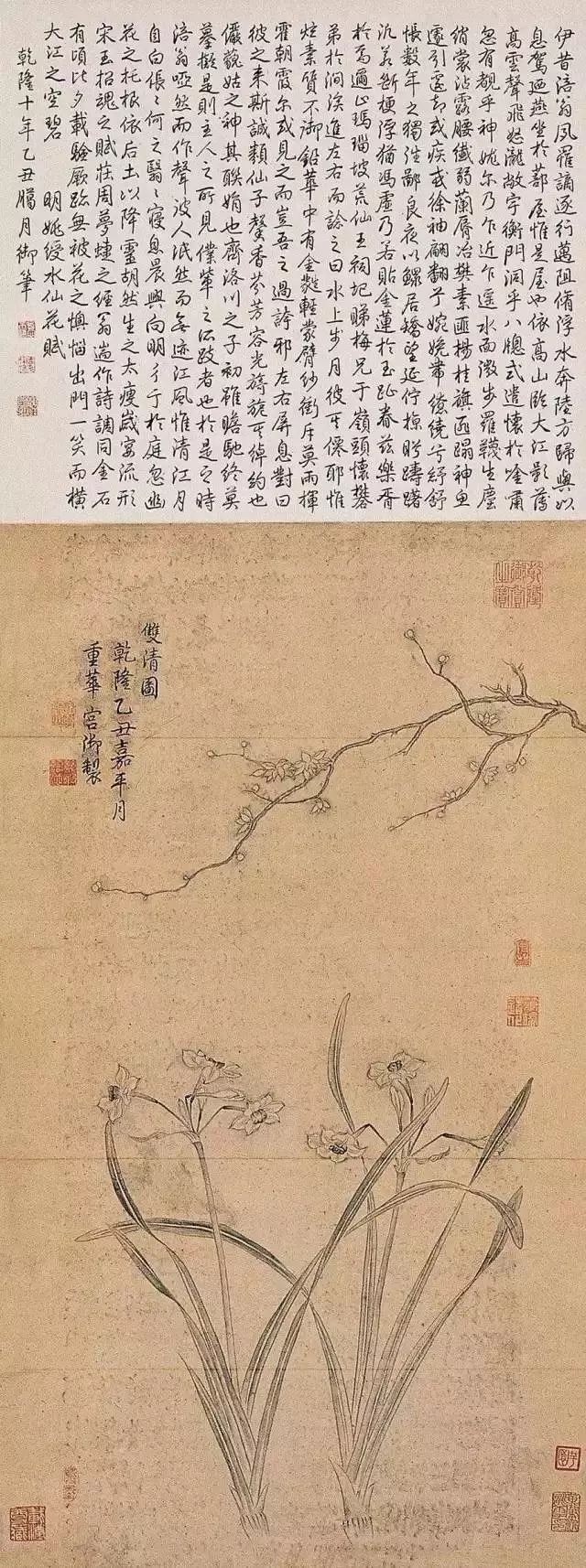 但是,由于乾隆皇帝并无很深的绘画功底,他学院体花鸟画时,即使作一幅小画也很吃力。所以,他转向了注重“古意”,而在写实功力上可以适当放松要求的“文人画”。