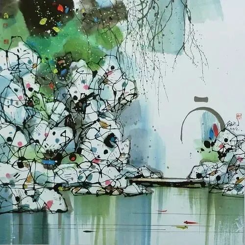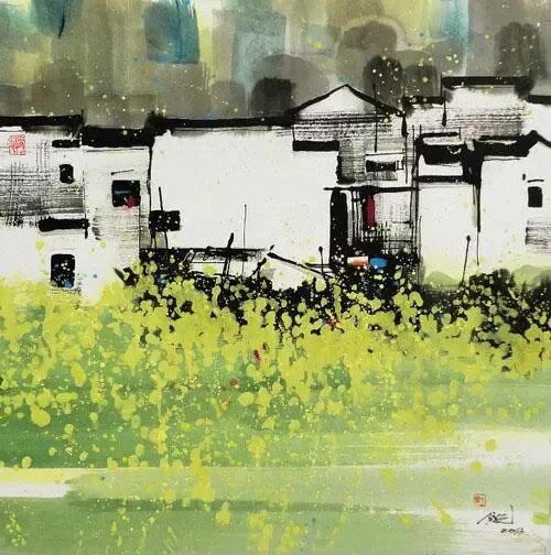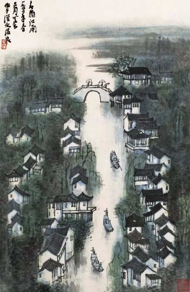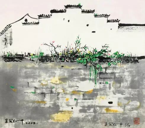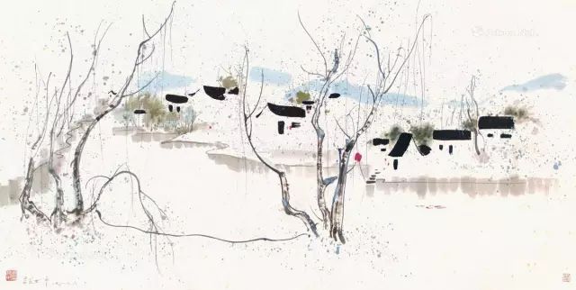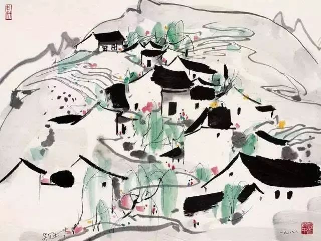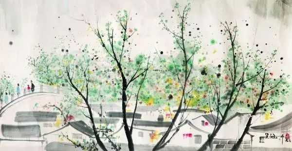 每每看吴冠中的画,便觉心中明朗澄净,舍不得挪眼。在吴冠中先生的画笔下,春坠入线之罗网,更遇彩点纷飞,人间春色长留画中看。抚过灰白墙壁,细雨成丝;