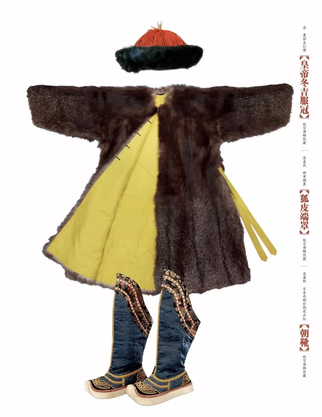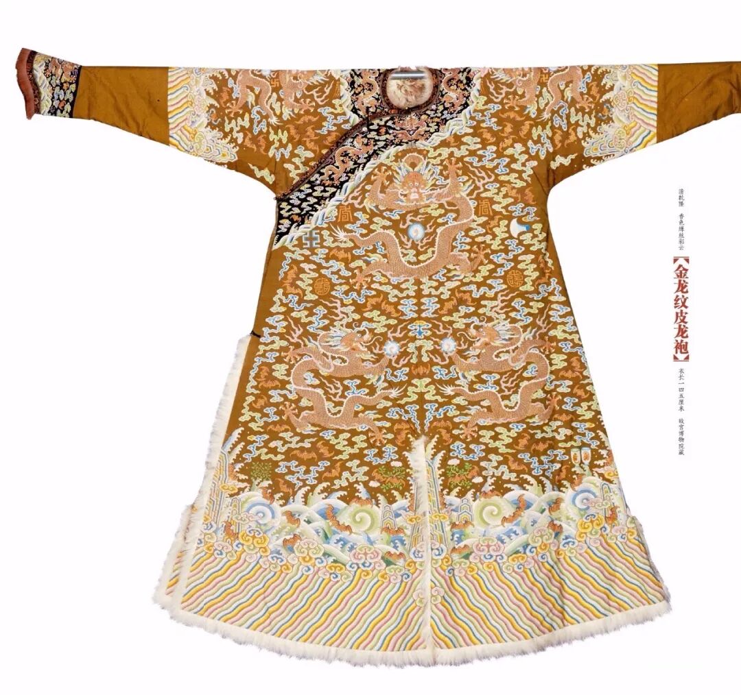 清代皇帝的龙袍面料多为缎,随一年四季的变化也有采用绢、纱、罗等质地,尤以缂丝质地的龙袍最为名贵。缂丝工艺费工费时,清乾隆时期一件缂丝龙袍要耗时三百九十个工日,花费万金。清代对龙袍的穿戴有严格规定,龙袍之外需套衮服,头戴吉服冠,胸前挂朝珠,腰系吉服带,脚蹬皂靴。皇帝穿衣都由尚衣监管理,四执库负责保管。每天穿什么都要提前准备,还要如实记录在《穿戴档》中。