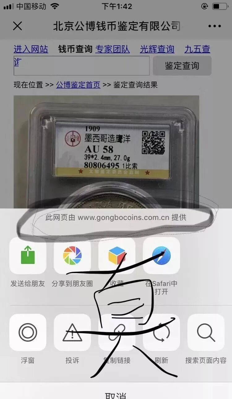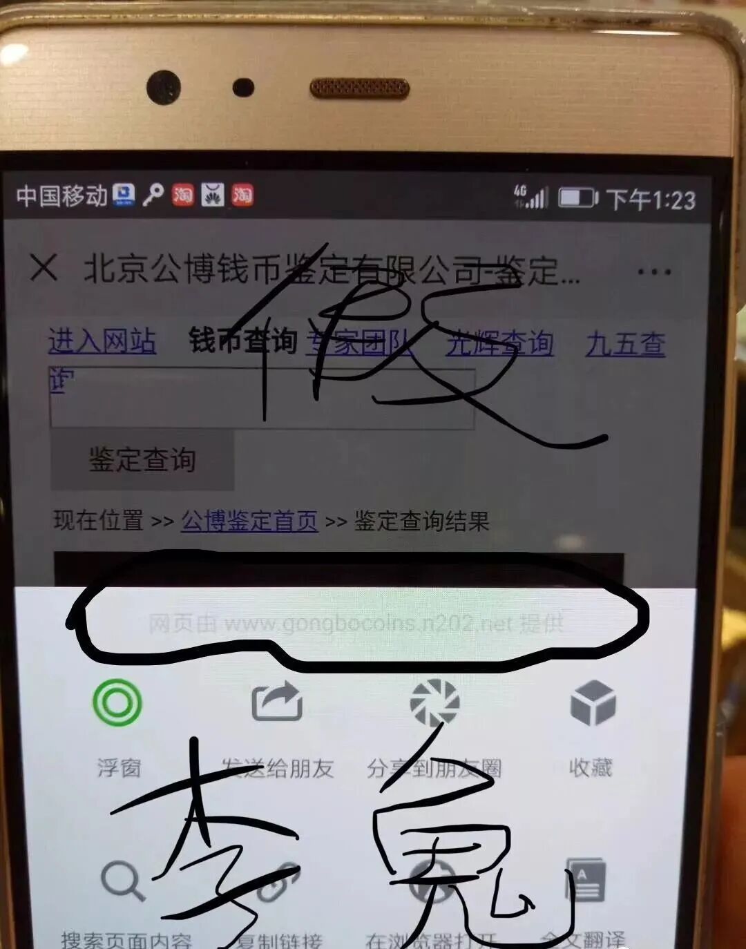 所以,就出现了高仿盒子币甚至是作假的官网图!很多泉友容易中招。看到是盒子币,直接扫一扫盒子币上的二维码,然后就会出现假官网的盒子币图片。因为有盒子,又有官网图,一核对就是觉得是真的。因此上当受骗。只需要通过百度打开公博或者是PCGS的官网图,手动输入盒子币编号即可查看。千万不要偷懒,直接扫一扫盒子上的二维码,扫二维码会直接跳出来图片,没有网站域名,就极易受骗。这类骗局类似于办假证或者是办学历证书的,说网上可查,实际上,只是做了仿照真网站界面的一个假的网站,然后把假的学历证录入进去就可以查到了。就像下面这枚假币,直接扫一扫二维码,会弹出一个仿冒的官网图。但是查看网页来源之后,就会发现,这个网页并非是公博官网图,而是做的一个假网站!扫一扫出现上面的图,就很容易认为是盒子币,很容易上当!但实际上,查一下网页来源,就知道是假的官网图,所以,务必要手动百度搜索评级币公司的官网!下面这个才是真的,但是考虑到泉友并不会去记忆公司的官网域名,所以,最好的方法还是通过百度官网进入,或者直接关注公博的公众号或者是进行手动输入编号查询。以上图片和信息来自盗梦空间泉友,为了让大家少受骗,请积极转发。