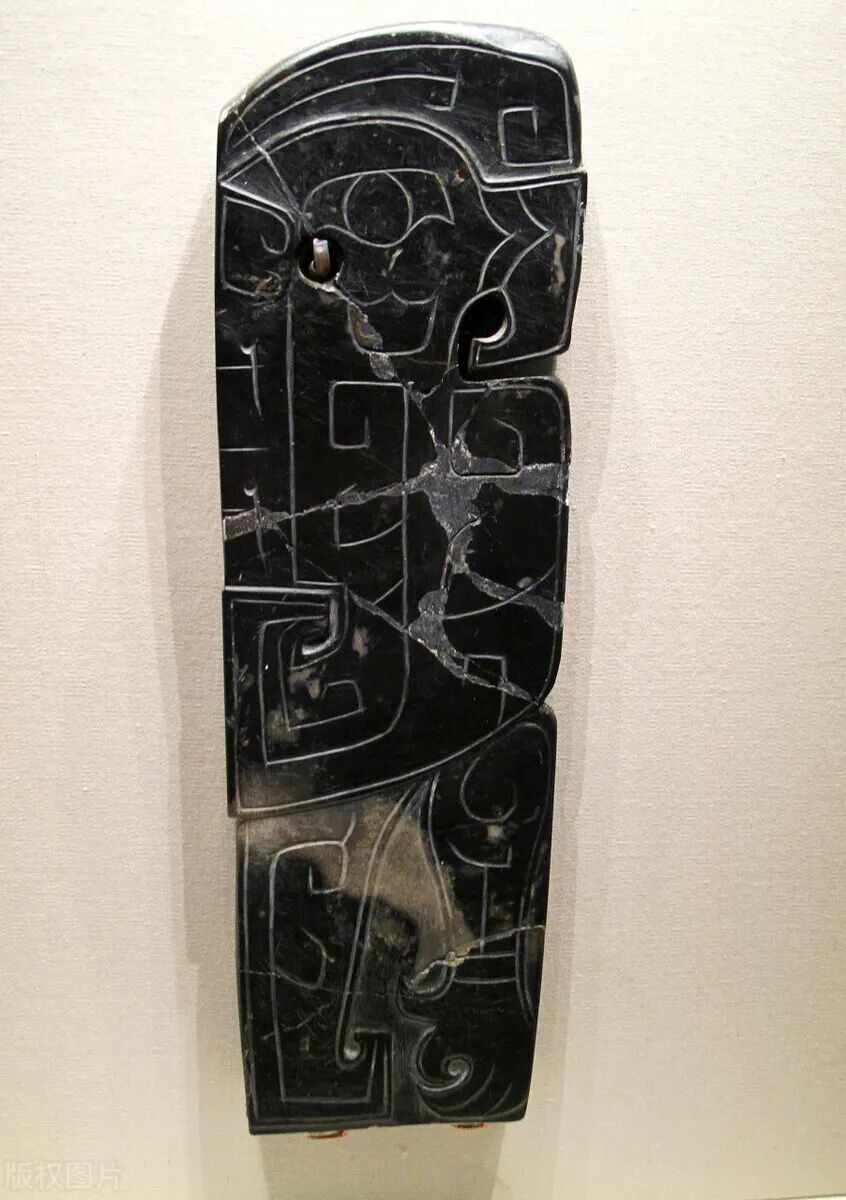 这一件凤鸟纹石磬,属于打击乐器,商王武丁时期。它也是阴刻线条的。阴刻单线和阴刻双沟线是商代制作玉器的主要装饰技法无疑。所以。你在市场上看到这种简单的玉器,不要简单的错过了。