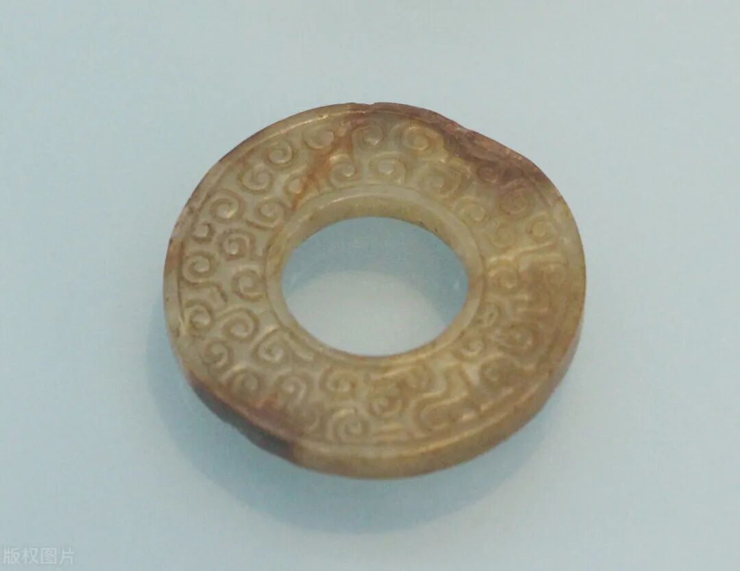 高古玉收藏,由于目前属于不可流通的门类,所以国内其实价格并不高。再加上以安徽蚌埠为首的仿高古玉制品泛滥,所以大多数收藏爱好者对其几乎不接触,也就谈不上收藏了。但有一类高古玉,却在市场上有机会捡漏,这一块就是商周(西周)时期的高古玉器。为什么呢?图为青白玉瑗,网上给出的出处是殷墟,但这种玉瑗似乎一般为东周春秋时期风格。这也是谷纹,但和战国汉代时期的减地阳文的谷纹玉璧一类器物有明显不同,只用单线勾勒出了线条轮廓。