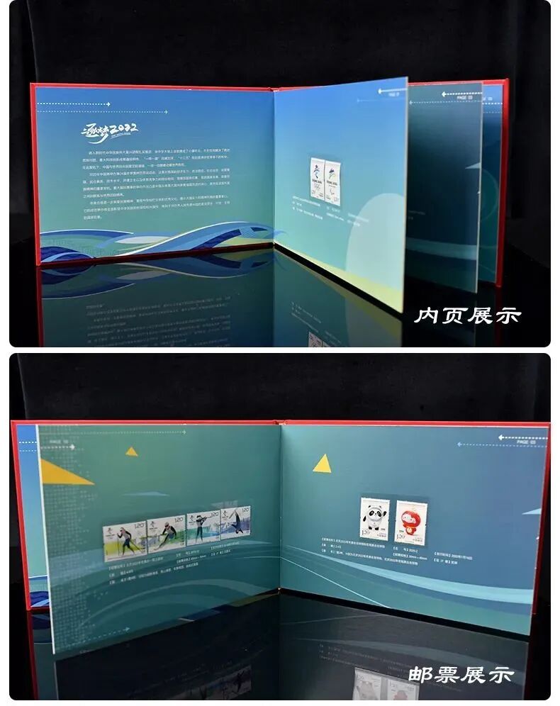 值得一提的是,邮票为卡册包装,打开后就可以看到邮票的相关介绍;通体跳跃重叠的蓝色,让人一秒感受2022年的冬奥会。![]()