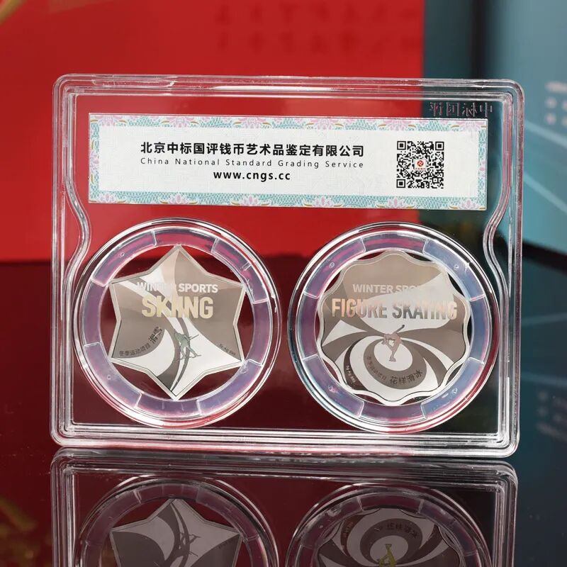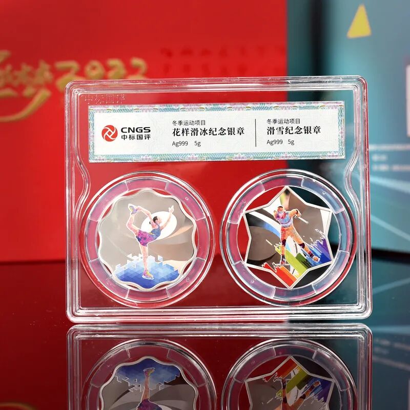 冬奥会邮票,已经陆续发行了四组;分别是会徽吉祥物、冰上运动、雪上运动和竞赛场馆4个系列。均由中国邮政官方发行,保真可查!接下来要跟大家隆重介绍一下两枚纪念章,设计感极佳,画面非常好看~花样滑冰纪念银章和滑雪纪念银章的异形设计十分特别,视觉效果也很亮眼!这两枚异形彩色纪念银章的难点不光在复杂的工艺,还在于色彩运用和体现动感的层次。![]()