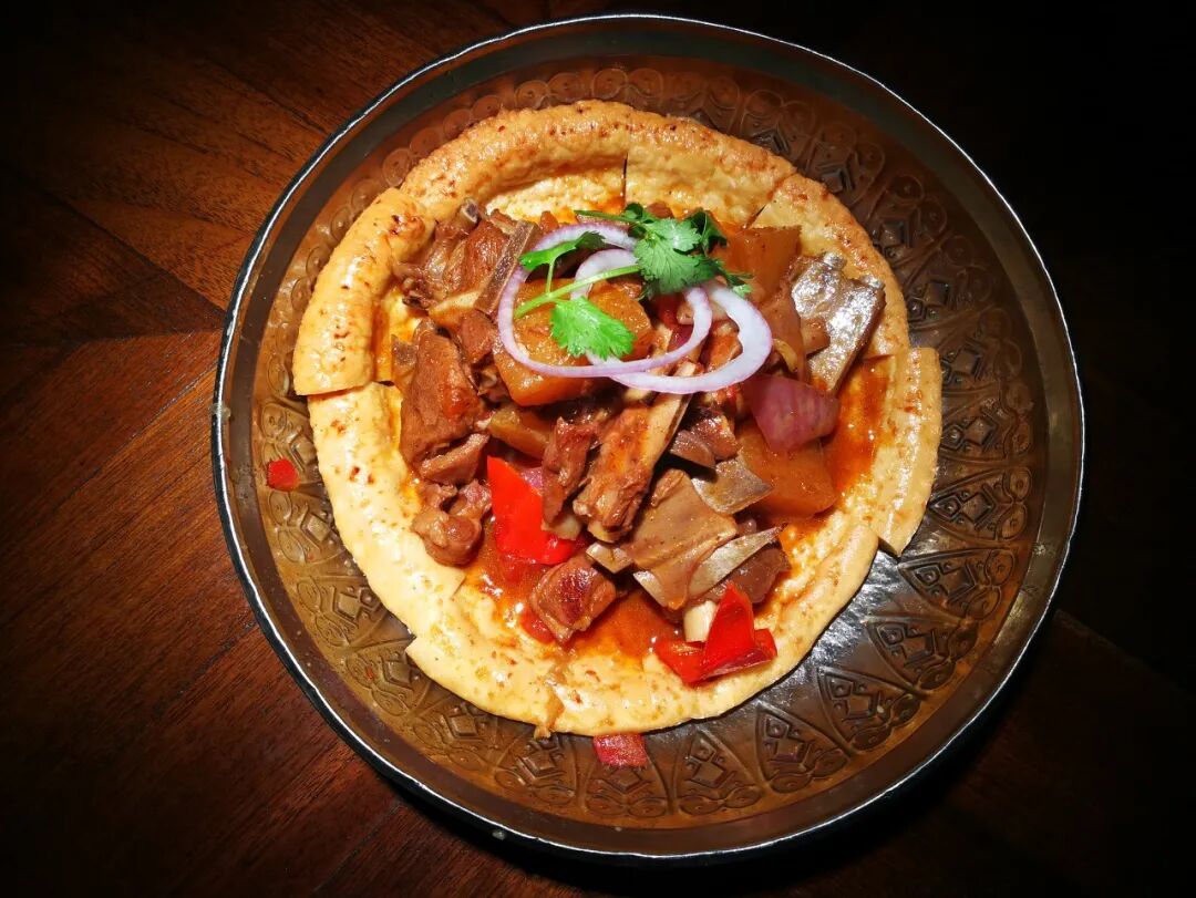 再拿起一块吸饱了酱汁的金黄馕饼,咸鲜柔软中带着馕的韧性,芝麻的油脂香和淡淡的小麦香在舌尖萦绕。配上一壶现煮的酥油奶茶,让丝滑醇厚的奶香安抚味蕾,一阵暖意涌上心头。