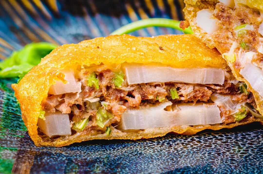每逢春节来临,家家户户都会准备炸藕夹。头发花白的老人将藕切成片,再麻溜地往两片藕片中间夹上葱花拌的肉馅,裹上白花花的面糊,放到滚烫的油锅里走一圈。