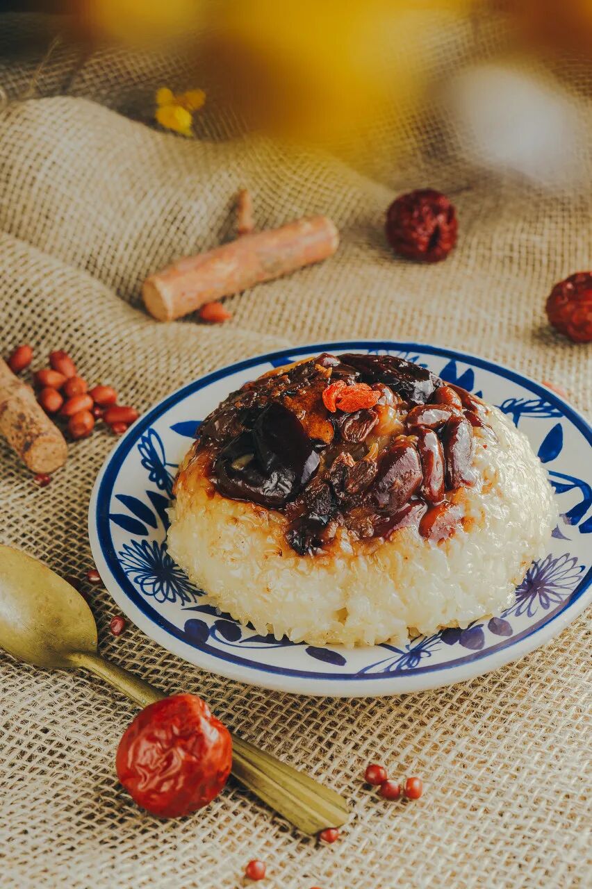 热热闹闹的除夕之夜,精致的八宝饭是压轴出场的「年夜饭之光」。被蒸得软糯糯的八宝饭,晶莹剔透如琥珀,上面点缀着色彩斑斓的蜜饯干果:红枣、桂圆、莲心、瓜子仁、核桃仁、冬瓜糖、葡萄干……用筷子轻轻一戳,藏在内里的甜豆沙纷纷现身。