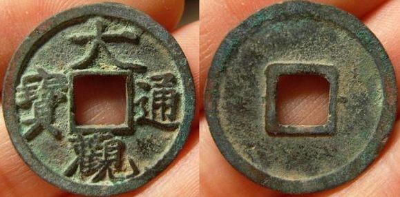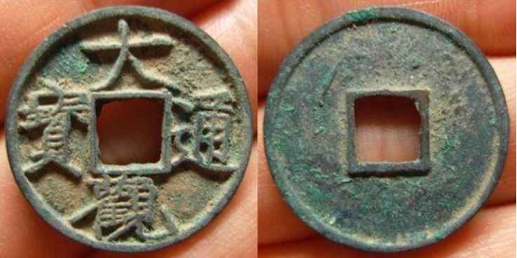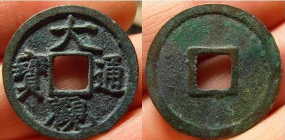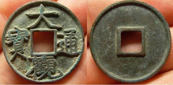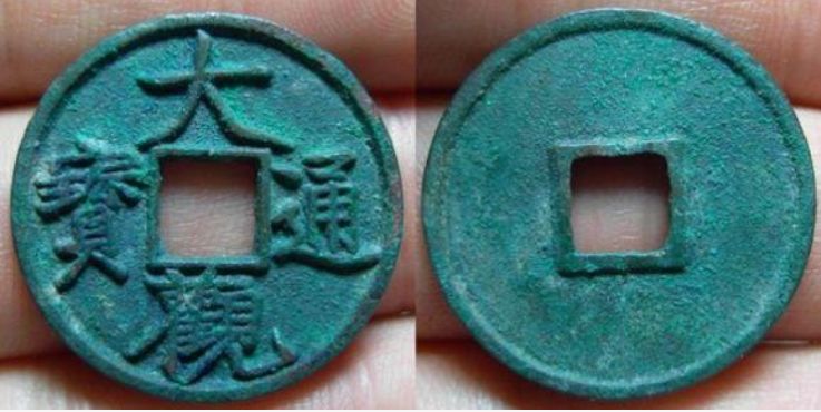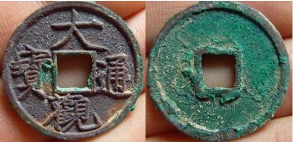 特征:与上版类似,最大的不同在大字比上版宽--大的最后一笔超过内郭的长度比上版长,且“大”字无垂尾的感觉,撇捺的末端皆较平。图没拍好,此版一般铸造精良,而且书体类似折十,因此也有泉友称其为“折十手”的。另外补充一点,与降通版的区别,只要看“通”字末笔左端是否与内郭平齐即可。