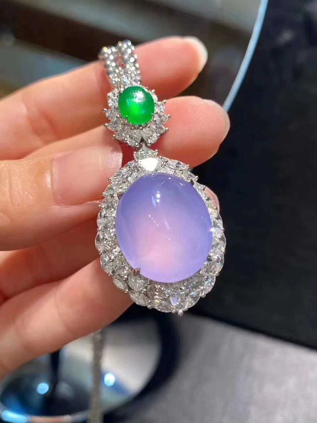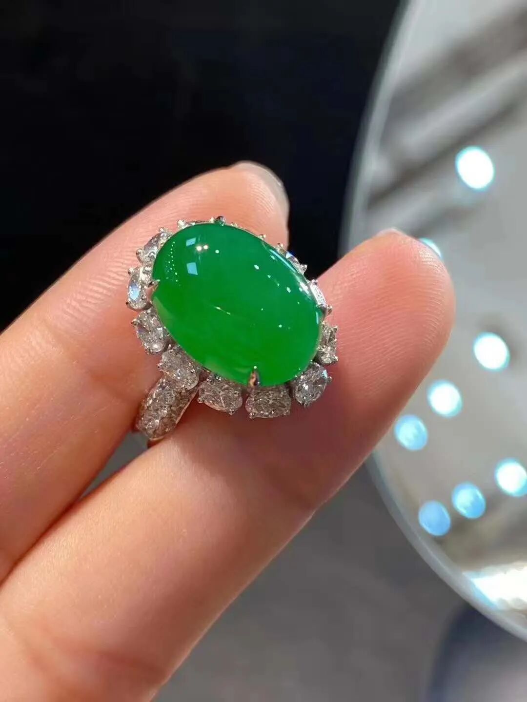 翡翠透明度高,水头好,颗粒细腻,且排布均匀有序,当光线穿过这样的翡翠,边缘会折射出一条亮线,即我们叫的莹光,在有一定弧度、弧面的翡翠上更容易起莹,它是一种光学表现。