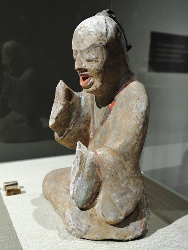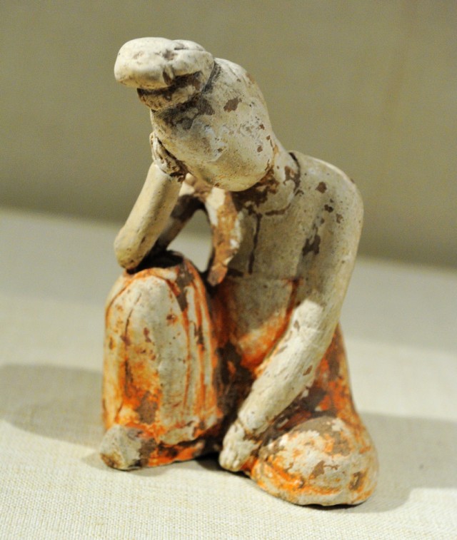 这个陶俑在大都会的标签是Resting Dancer,但我更愿意认为这是一个唐朝版的“沉思者”