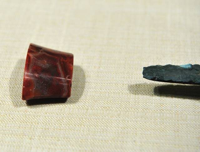 从现有的考古出土资料来看,玉、剑结合物早在西周时期就已经出现了。春秋战国晚期,四样俱全的玉剑饰逐渐形成,到了西汉这种玉剑饰就成了王公贵族佩剑上的重要装饰品,也成为当时社会一种身份的象征。玉剑饰的材料主要是以玉为主,包括玉剑首、玉剑格、剑鞘上带扣和鞘末玉饰四种。汉代的玉剑饰在战国的基础上有了新的发展,造型比战国时期的略高,边角抹圆也更加明显,有的甚至出现了镂空的工艺,这在玉剑饰的历史上还是前所未见的。汉代玉剑格的纹饰多以兽面纹为主,同时还流行一种高浮雕的蟠螭形象。