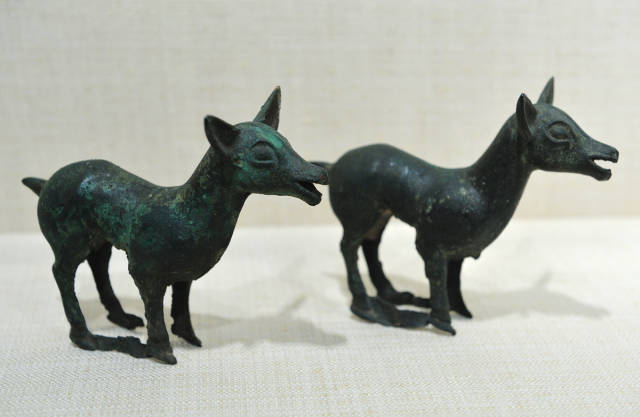 母鹿铜车轭饰(一对) 中国北方 公元前世纪 高11.6cm
