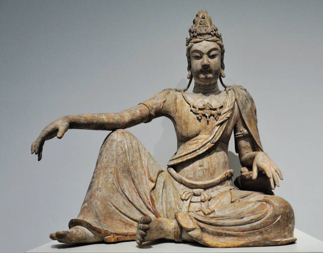 辽代彩绘木雕水月观音像 高118.1cm