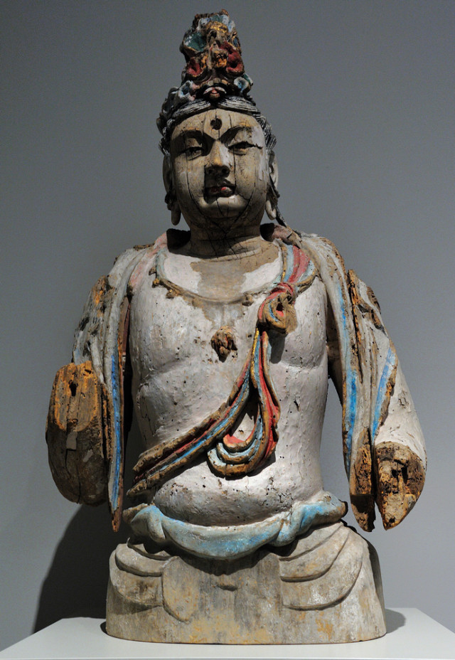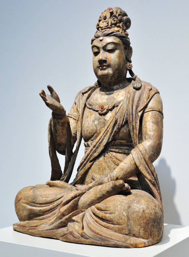 北宋彩绘木雕文殊菩萨像 高109.2cm