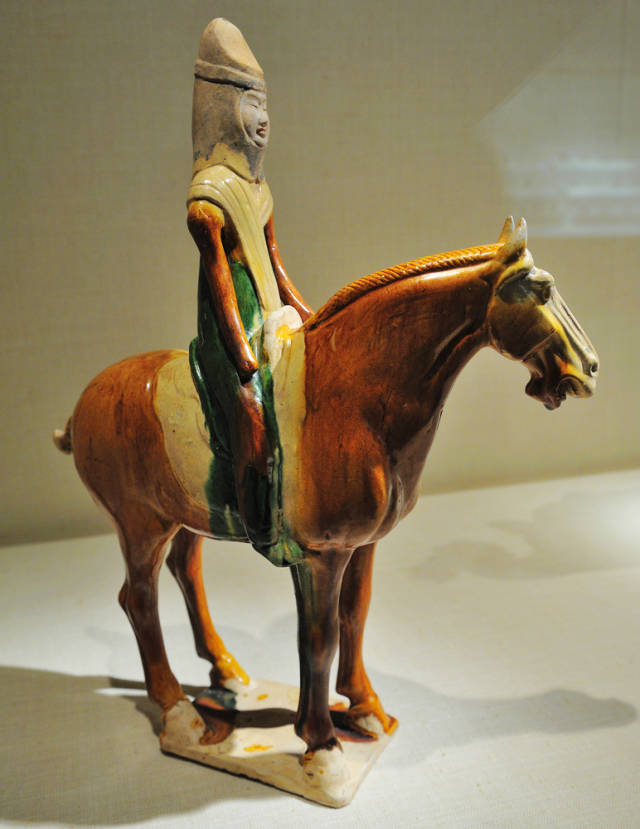 三彩女骑手与马 唐代 高44.5cm