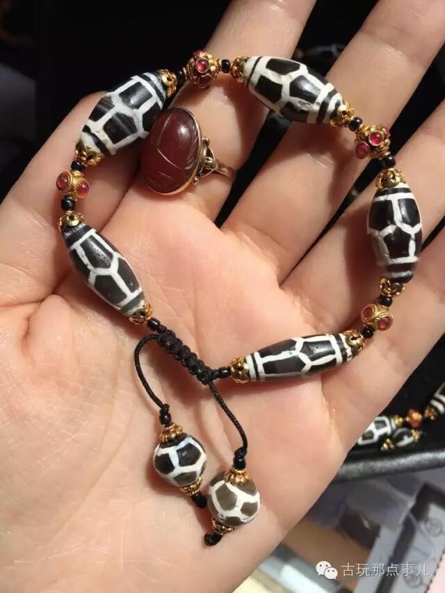 我私下揣测,在佛教被强势国王推为国教的年代,产生了这种形制的珠子,这其中会不会有关联呢?你看,白色网格纹,多么像佛教的袈裟图案。袈裟一小片一小片缝缀而成,像一块块的田,所以又叫“福田衣”。意为永断烦恼而作良田,在良田上长菩提之道。而正是这良田一般的白色网格纹,传入我国后,被解读成龟壳图案,在我国的文化中,龟象征长寿,这种珠子理所当然被叫做“寿珠”。