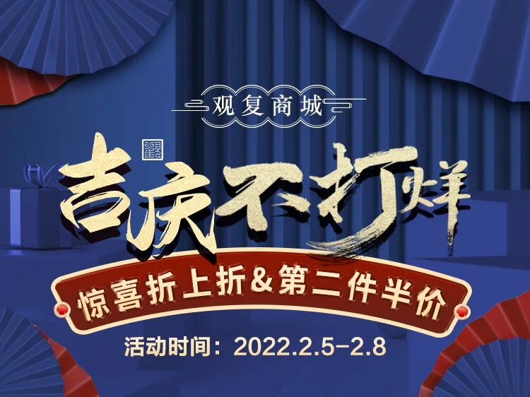 另外,观复商城虎年新春吉庆不打烊!!活动持续进行中。惊喜折上折,大额优惠券,更有第二件半价!