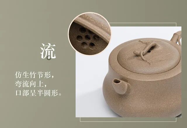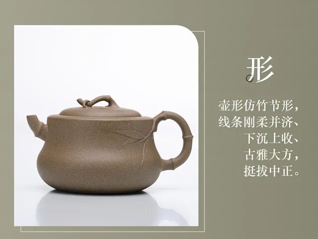 壶形仿竹节的形状,下沉上收,挺拔中正;线条刚柔并济,自然延伸,宛若天成。