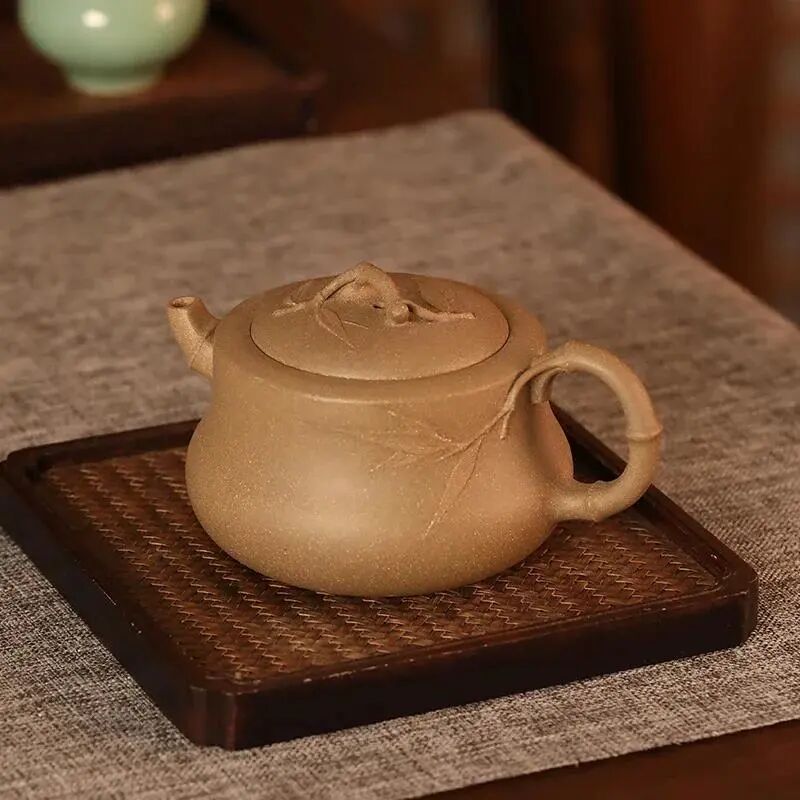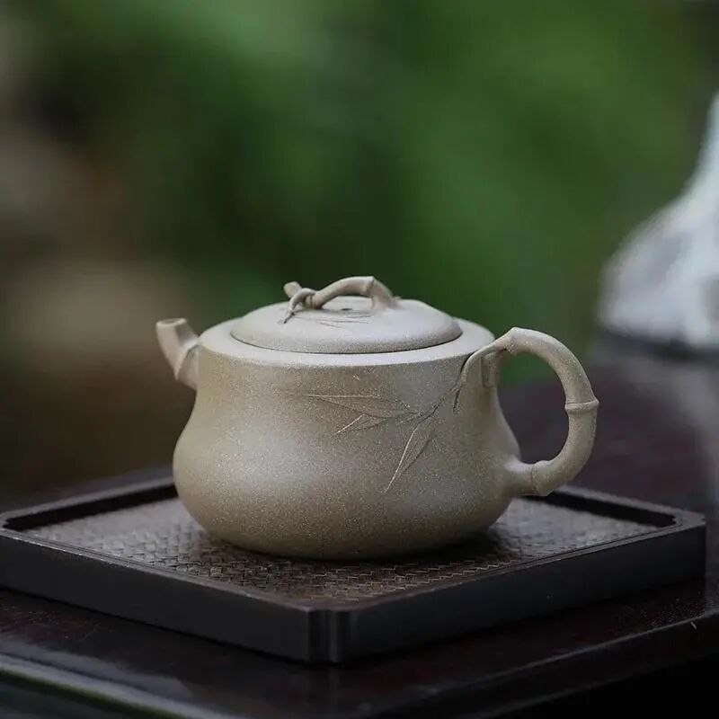 观复君子清风系列【趣竹壶】,以原矿青段泥为胎,含铁量含砂量较高,烧成后在不同光线下略微泛青,清新淡雅。