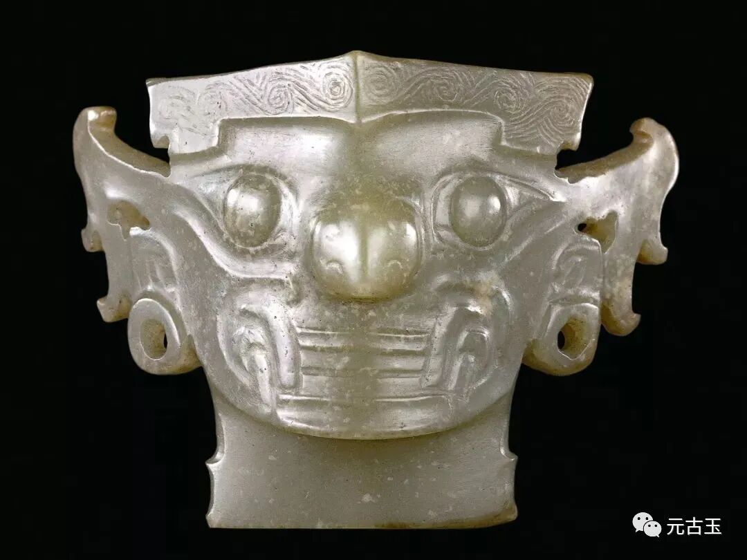 然世风不古久矣。爱玉者渐众,利益趋之,货假者亦如逐臭之蝇,攘攘不绝。故同好者在修心之余,亦须明眼。而造假之术日新一日,令吾辈防不胜防,奈其何哉?玉人首,商,高6.3cm,最宽2.6cm,最厚0.8cm。 青玉质,表面有白色水沁。器横截面略呈三角形,高浮雕一人首形象。人梭形眼,出梢,粗眉,大嘴,厚唇,大耳,长颈,头戴冠,冠上饰以阴刻线纹。此器反面光素平滑,下部有一榫状物,榫上还残留有半个孔的遗痕,可能原插嵌绑缚于某种器物上。 愚不才,难识众多高仿之术,惟坚信真者自真,假者自假,古玉乃天地之精华与先民之智慧所凝结,天地神灵岂可欺乎?故作伪者必有难以模仿之处,如能领悟古玉真正难仿之要髓,则真假自辩也。 木石纵览前人识玉之经验,细察真伪古玉之样本,窃以为,以下数点为古玉难仿之处。众兄如潜心揣摩,必有所得焉。![]()